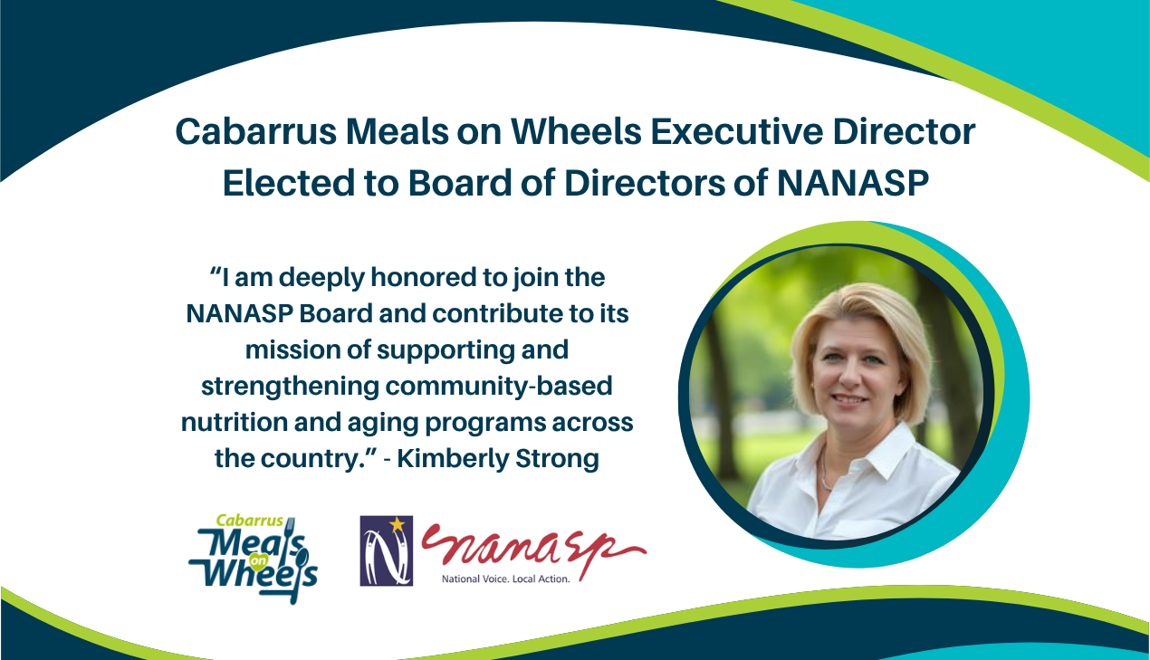 Kimberly Strong, Executive Director of Cabarrus Meals on Wheels, has been elected to the Board of Directors of the National Association of Nutrition and Aging Services Programs (NANASP). With decades of experience in senior nutrition and nonprofit leadership, Strong will help shape national policy and support aging services programs across the country.